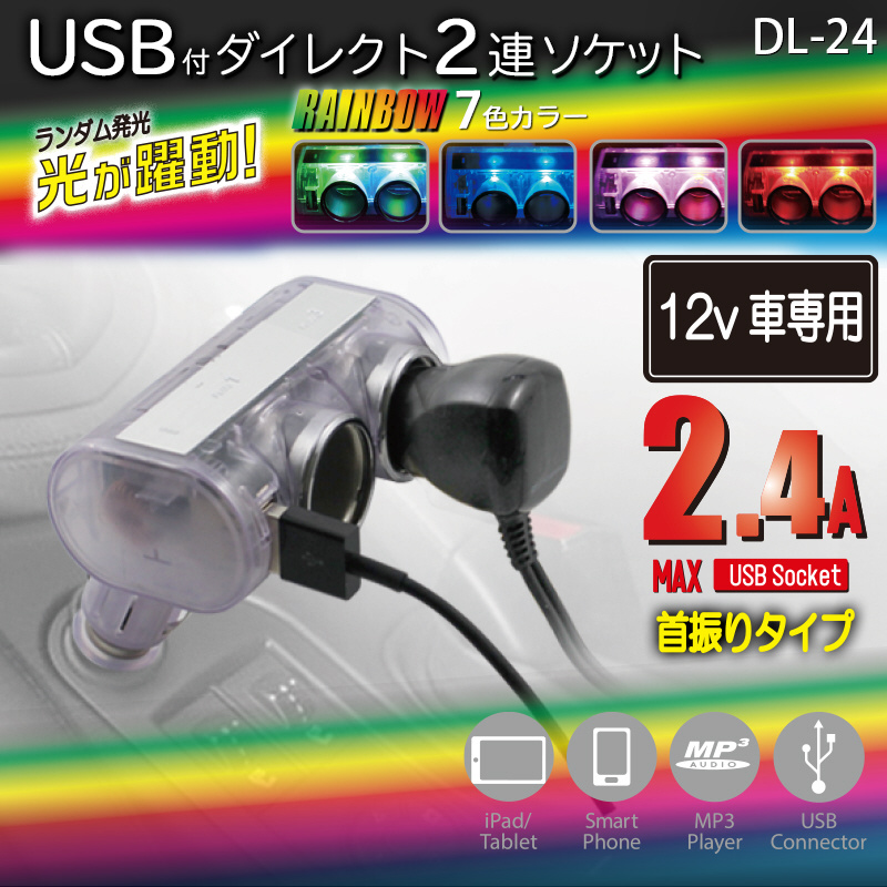USB付2連ソケットクリアダイレクト 7色カラー DL-24
