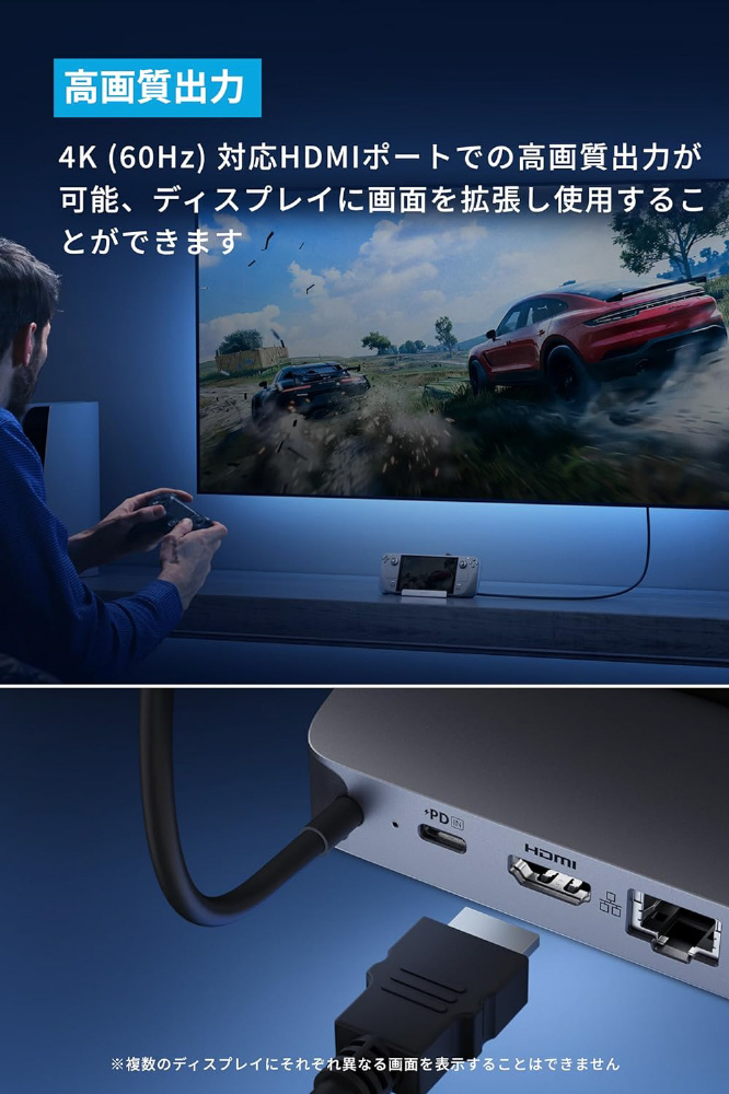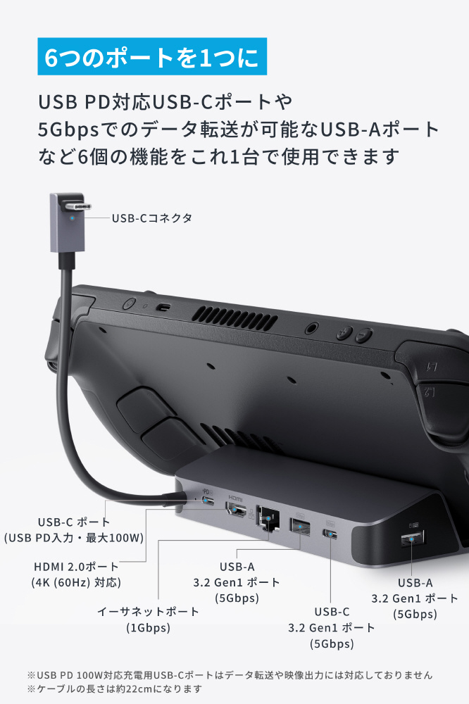 ポータブルゲーム機スタンド[USB-C オス→メス HDMI / LAN / USB-Ax2 / USB-Cx2]USB PD対応 100W ドッキングステーション A83S10A1 [USB Power Delivery対応]