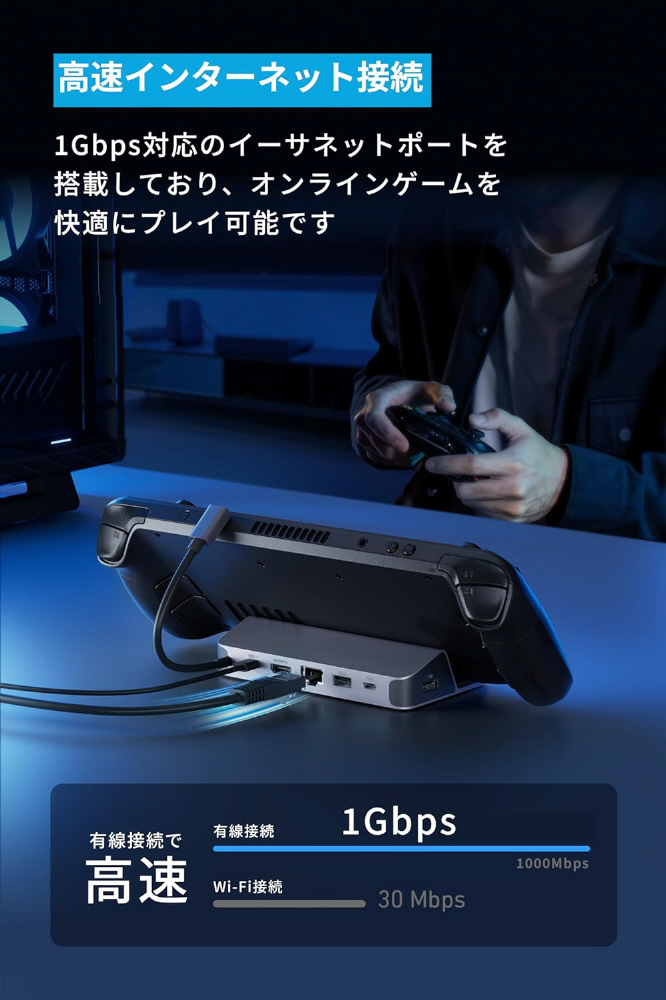 1Gbps対応のイーサネットポートを搭載しており、オンラインゲームを快適にプレイ可能です。
