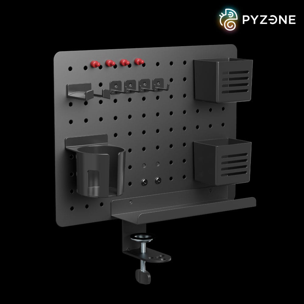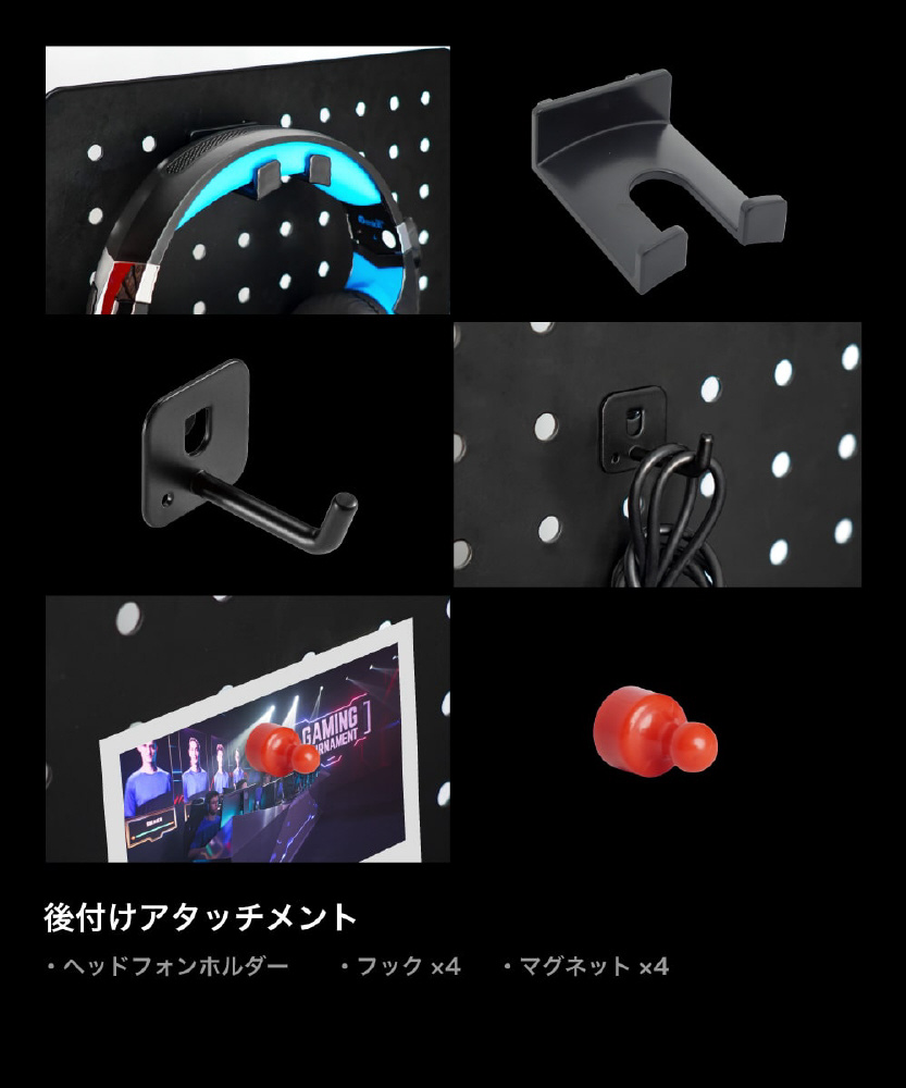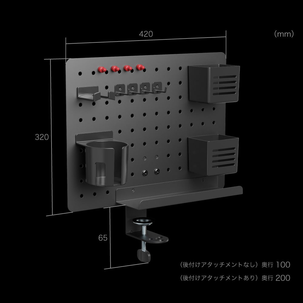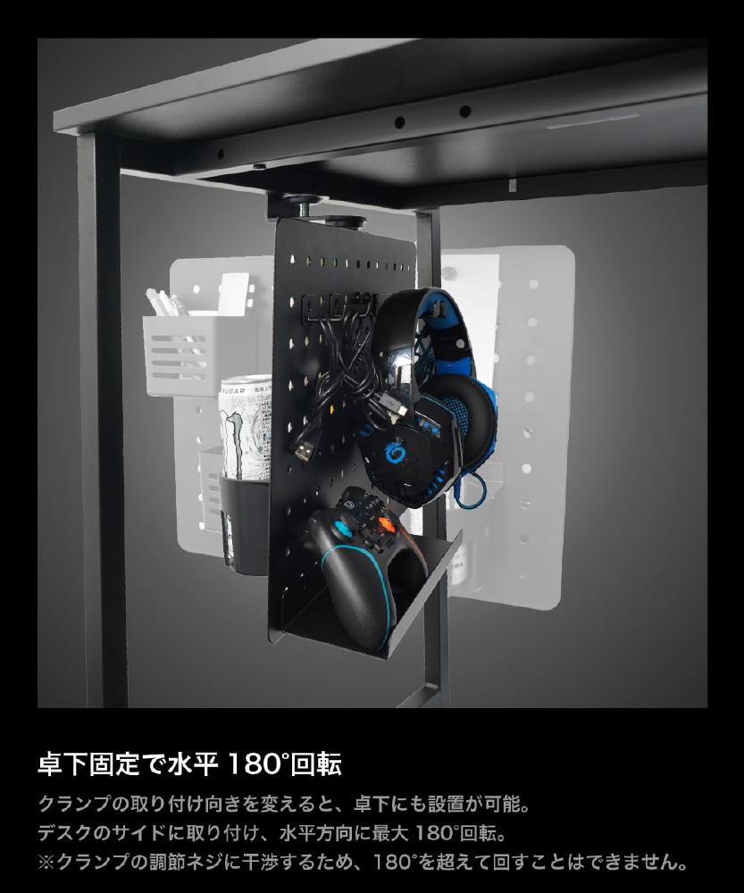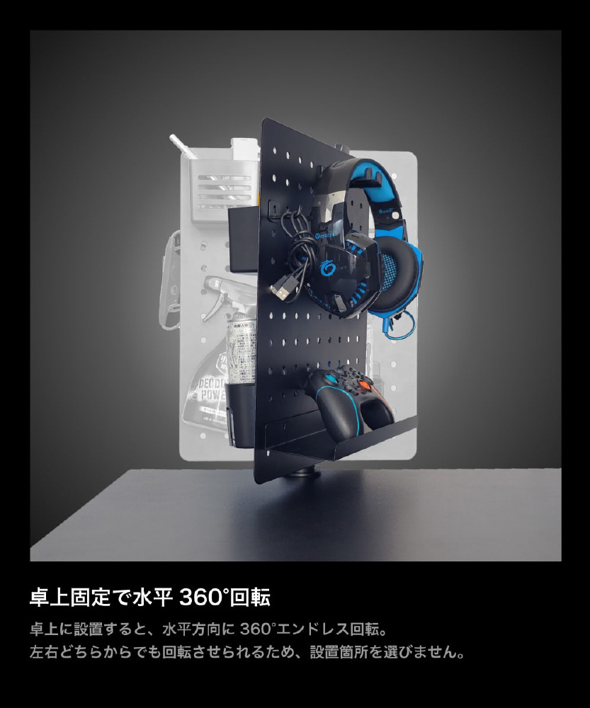 ■卓上/卓下に収納拡張。 最大360°回転&両面を同時に使用できる有孔パネル
