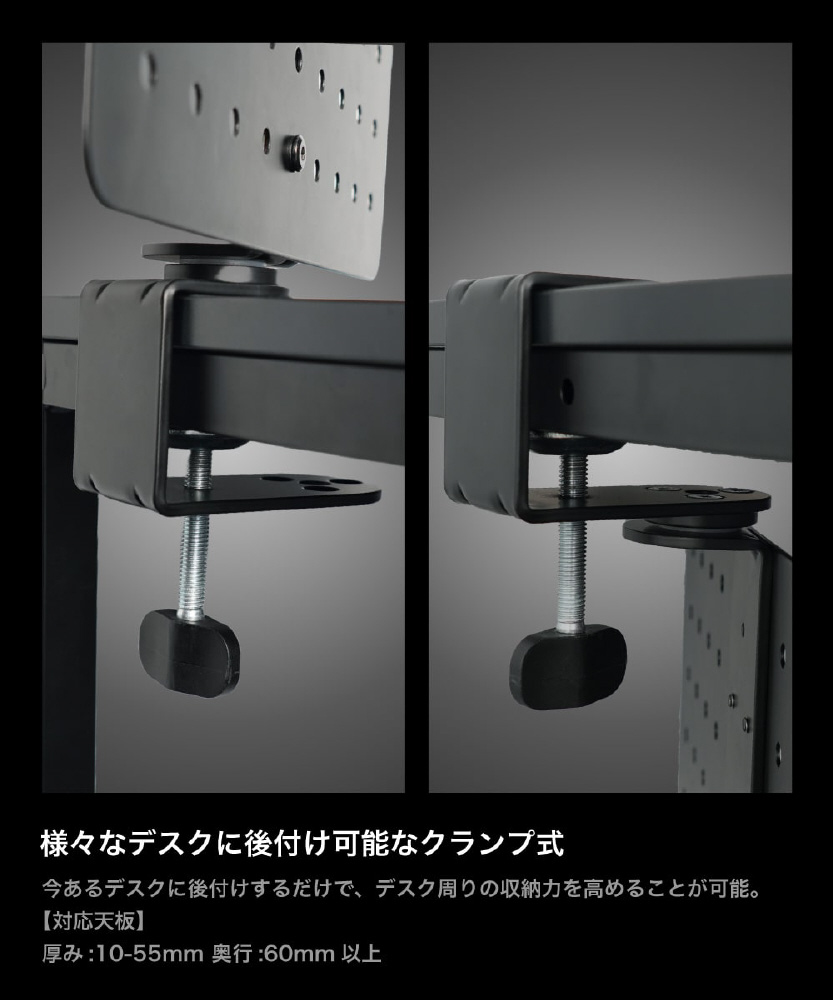 今あるデスクに後付けするだけで、デスク周りの収納力を高めることが可能。
