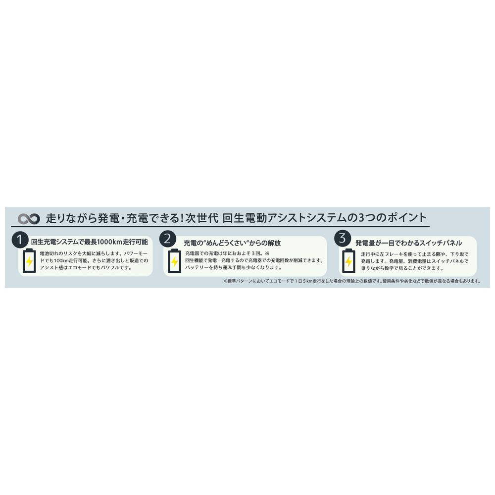 世界初!回生充電で最長1,000km以上走行可能。長く走れて、長く使える〈リバイク〉