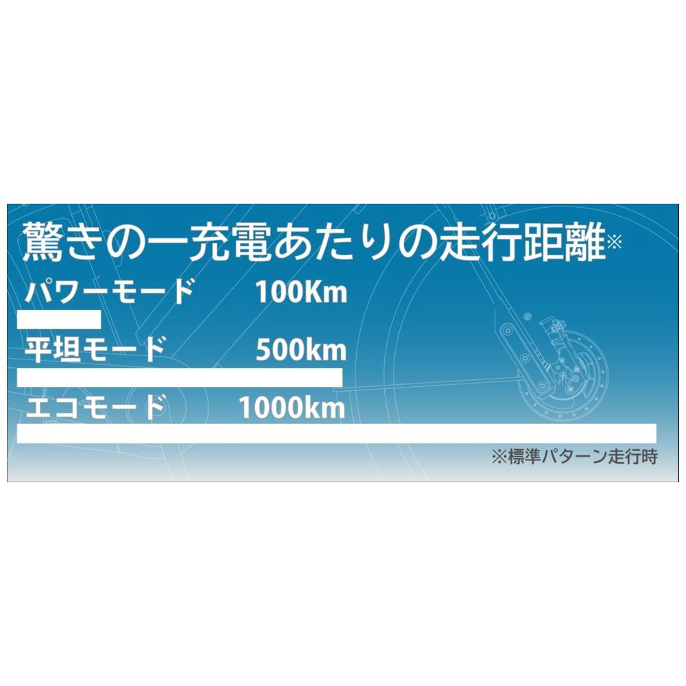 1充電あたりの走行距離 【パワーモード】100km【平坦モード】500km【エコモード】1000km