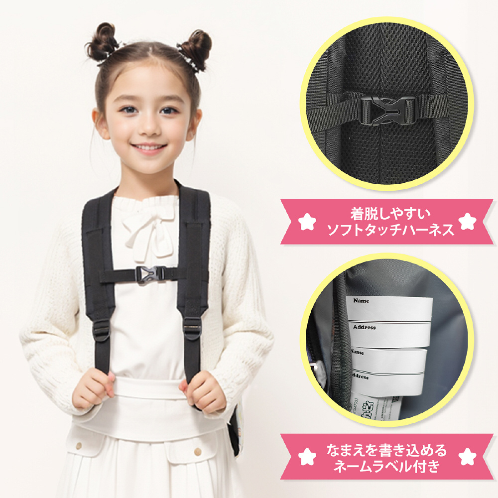 また内部にはネームラベルが2つ付いているので、兄弟で使用することも可能です。遠足や習い事、おでかけなどにも最適なサイズで活躍するアイテムです。