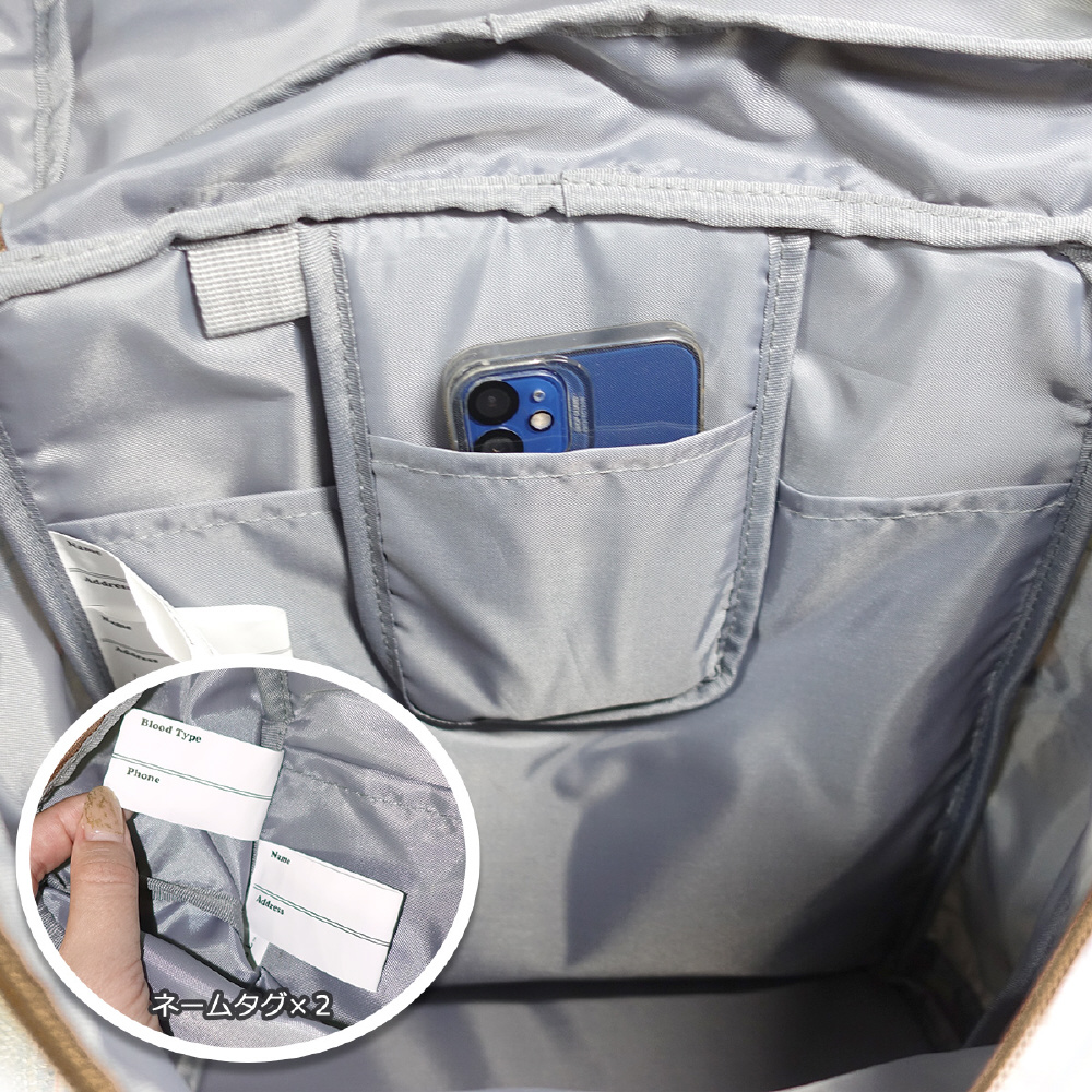 たっぷり入るボックス型デイパックと、タブレットPCなどを分けて持ち運べるバッグがセットになっています。