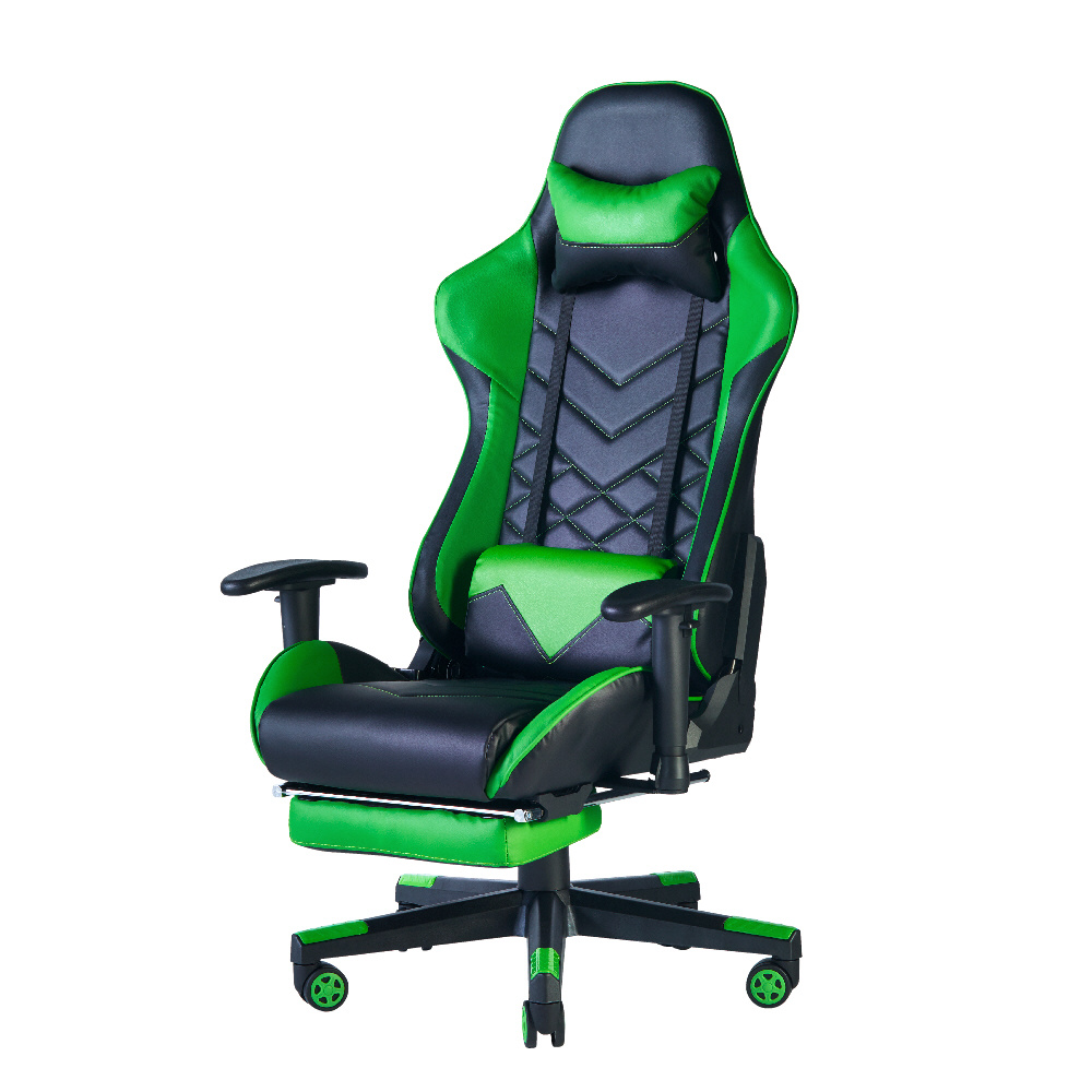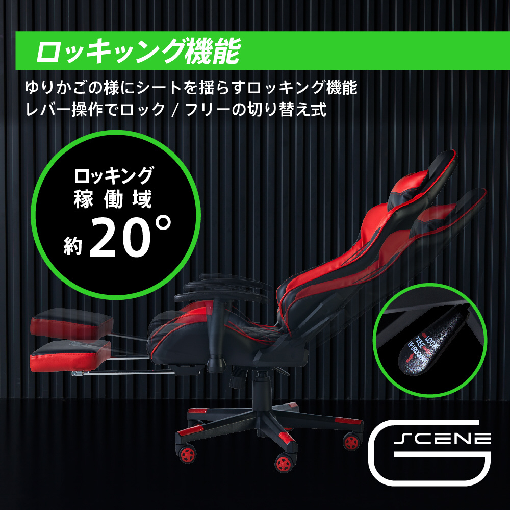 GCF-02RY ゲーミングチェア [W680xD580〜1110xH1250〜1350mm] ゲーミングチェア2 フットレスト付き グリーン