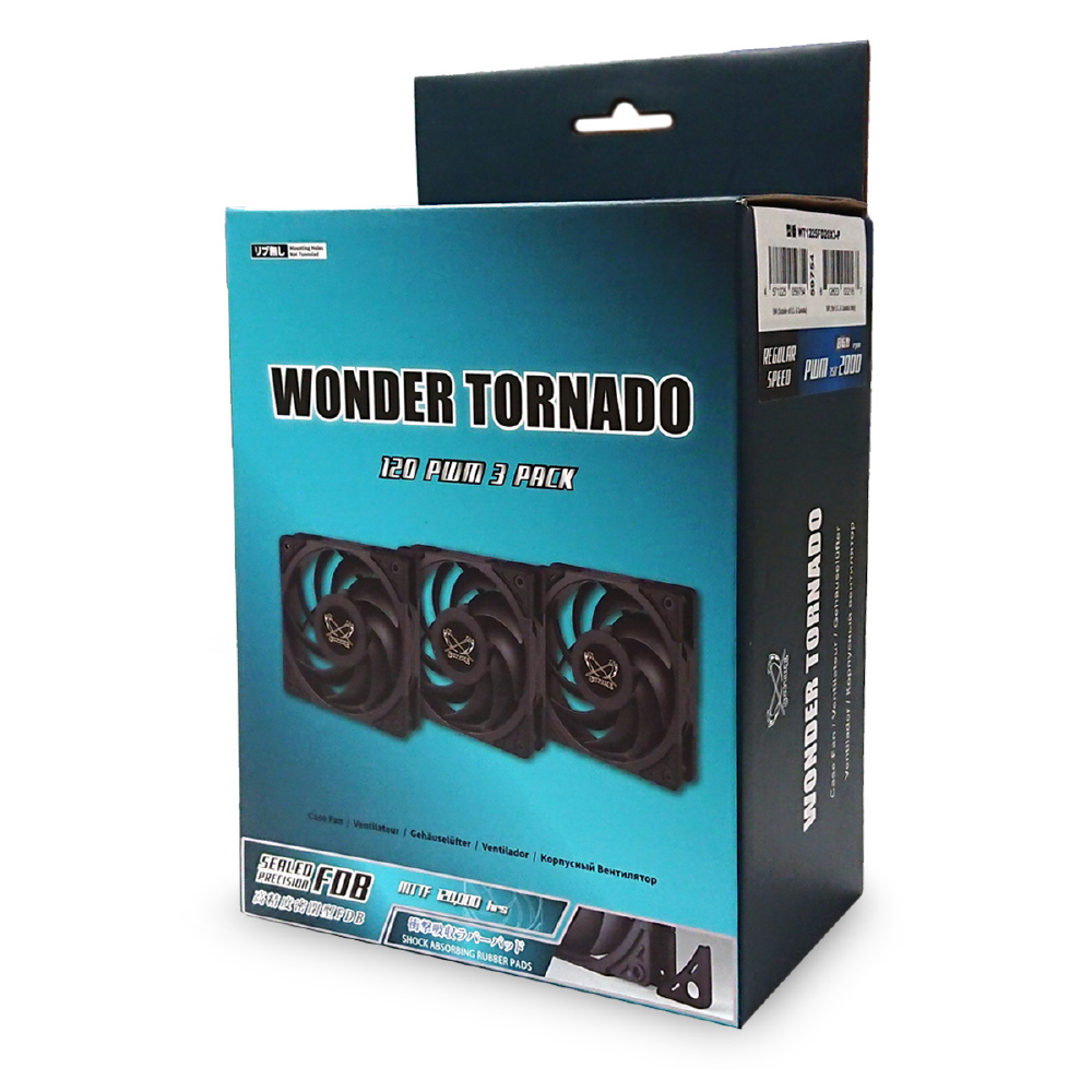 120mm角4ピンPWM仕様のケースファン「WONDER TORNADO 120」回転数2000rpmの3個パック