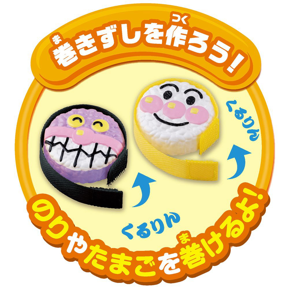 アンパンマンのたまご巻きとばいきんまんののり巻きは、卵とのりをくるりん!