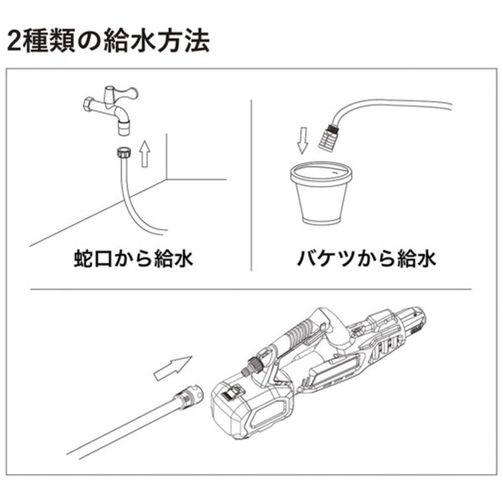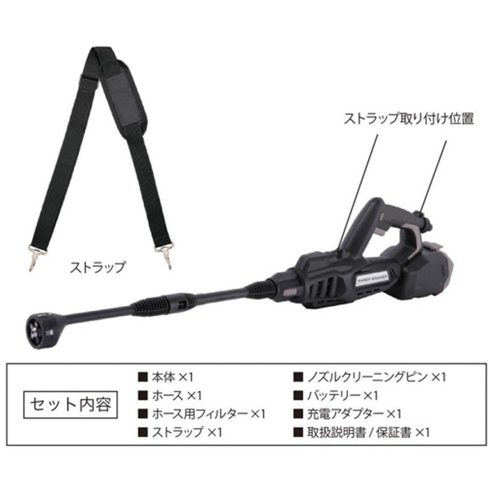 洗浄機本体・ガンコネクター・5in1ノズル・給水ホース(6m)・24Vリチウムイオンバッテリー・24Vリチウムイオン充電器・フィルターケージ・ノズルクリーニングピン・ストラップ・取扱説明書