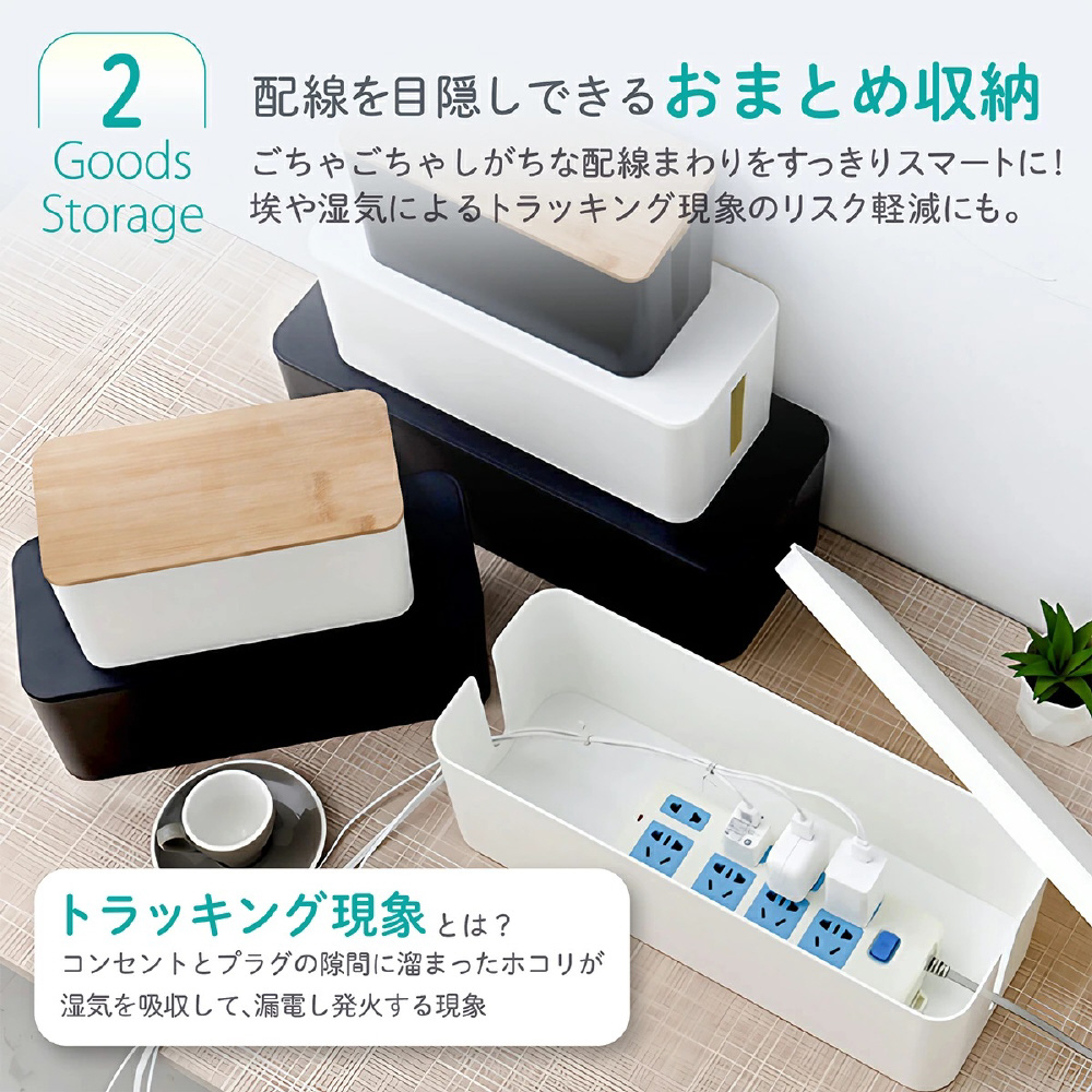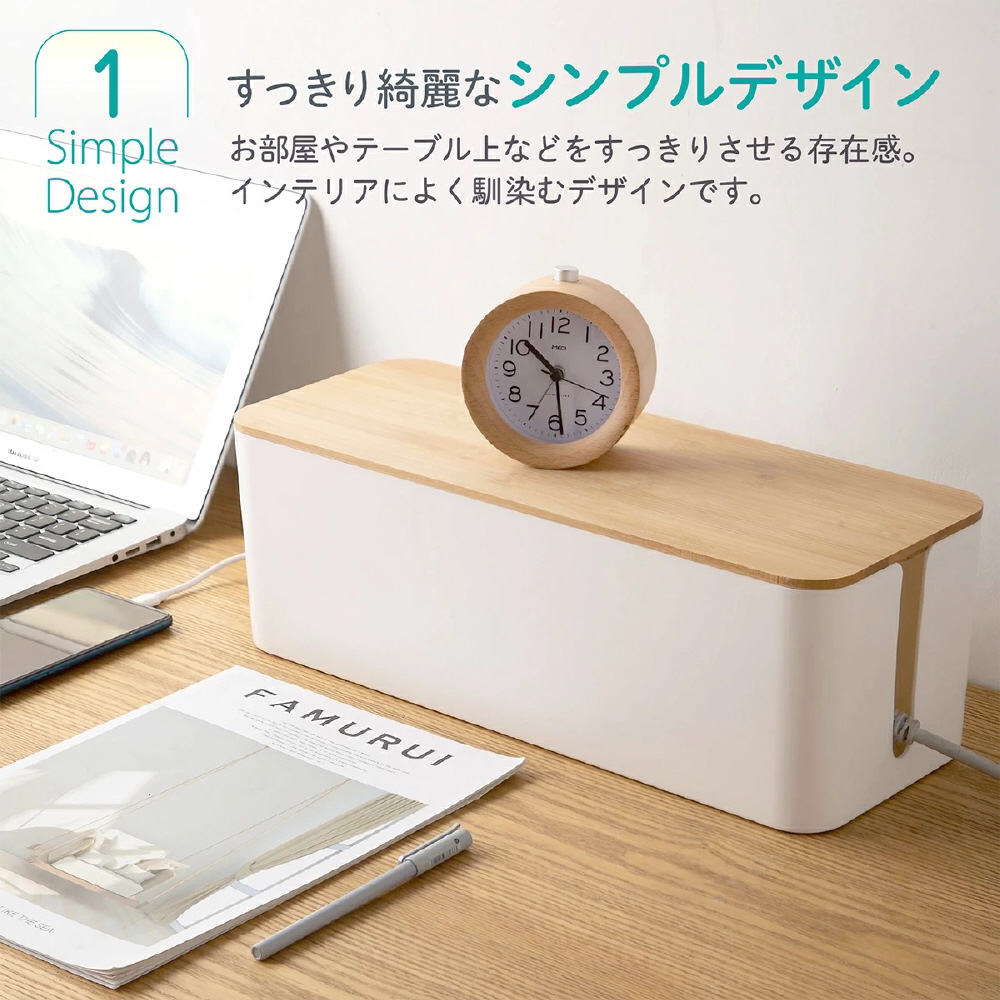 お部屋やテーブル上などのコード類をスッキリ収納!インテリアによくなじむデザインです。