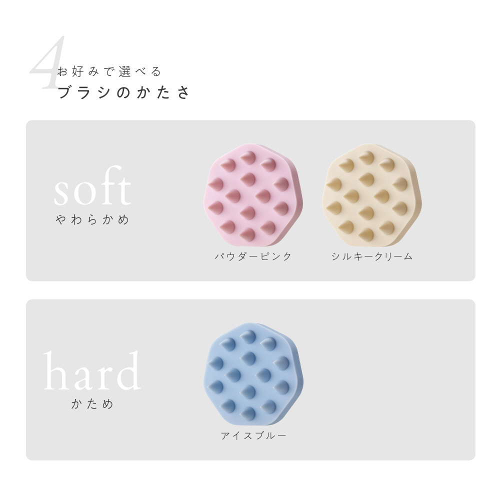 弾力性のある約14本のエッジ突起で、頭皮を優しくとらえヘッドスパのような心地よさで疲れを癒します。