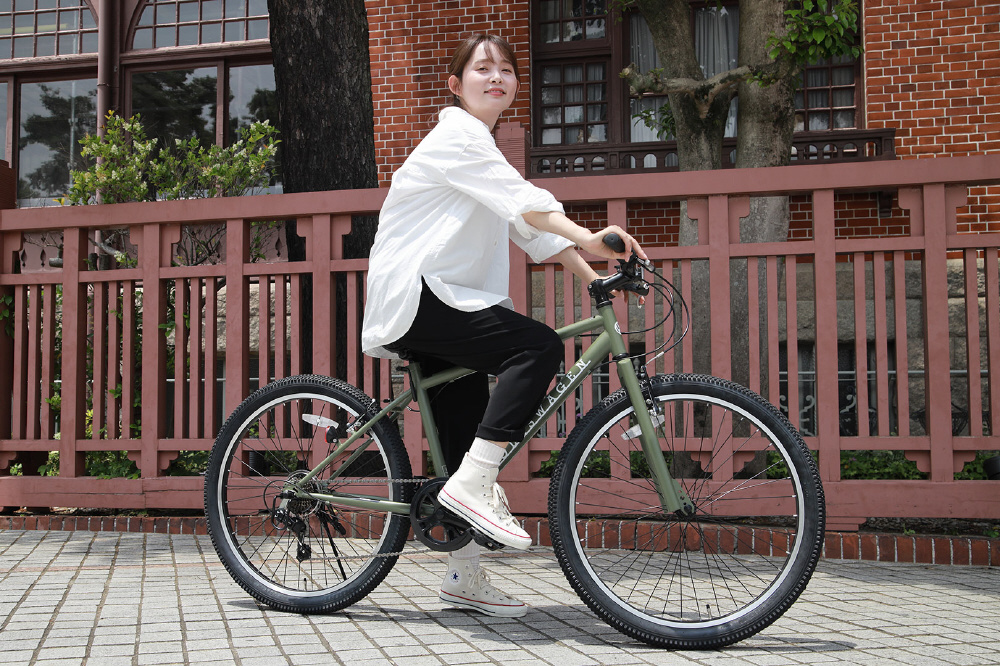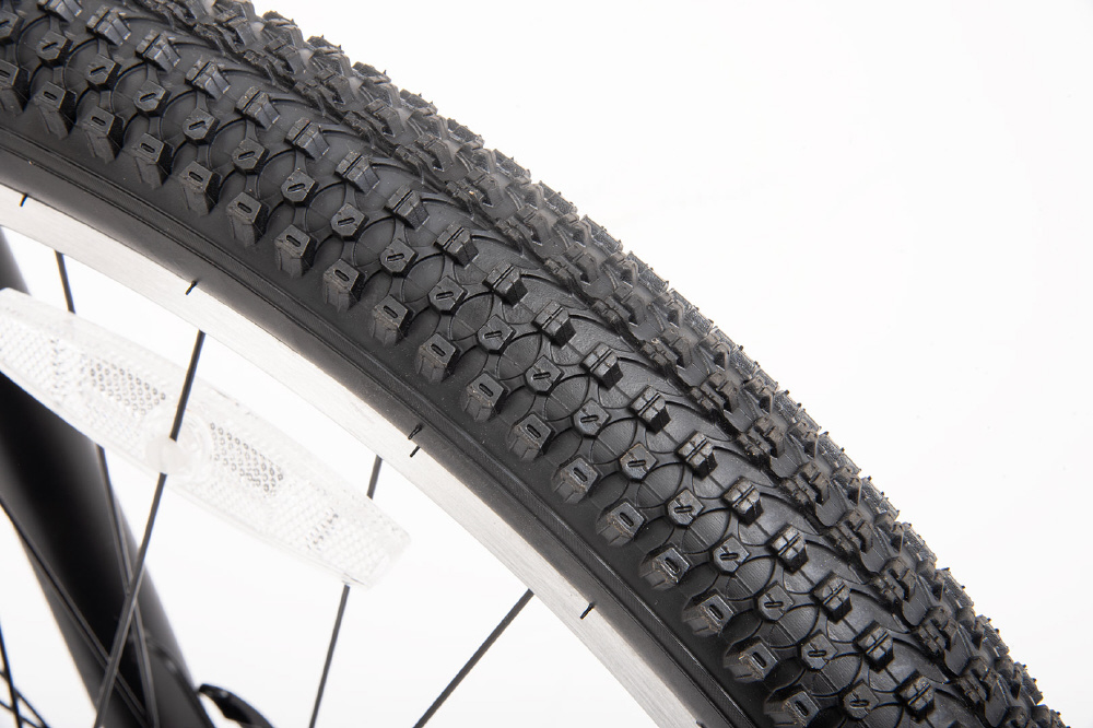 オンロードでの転がりとオフロードの使用を両立した26インチブロックタイヤを装着。