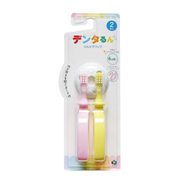 AL-TB1SN-2P デンタるん りんぐグリップ (ベビー歯ブラシ)6ヵ月〜 2本組 イエロー×ピンク