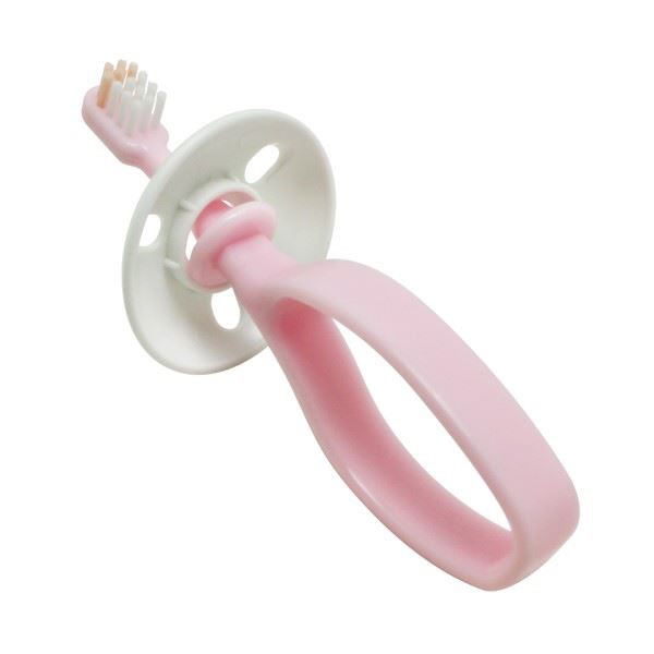 前歯が生え始める頃(6ヵ月〜)向けのベビー歯ブラシです。どこからでも持ちやすいりんぐ形状のグリップは、上下左右どの方向にでも持ててブラッシングすることができます!ブラシヘッドが「乳歯2本分」を目安にしたちょうどいいサイズ感に設計