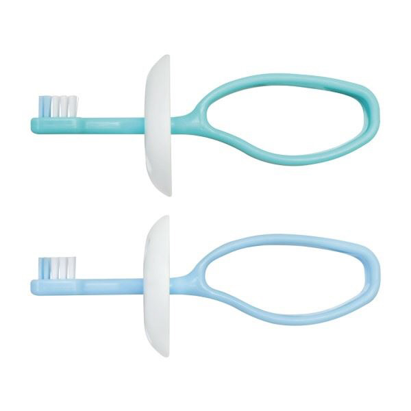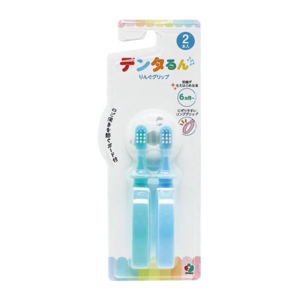 AL-TB1SN-2P デンタるん りんぐグリップ (ベビー歯ブラシ)6ヵ月〜 2本組 グリーン×ブルー