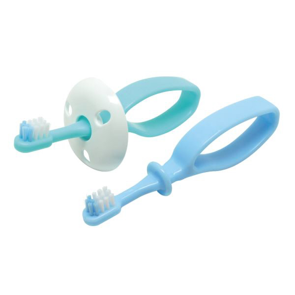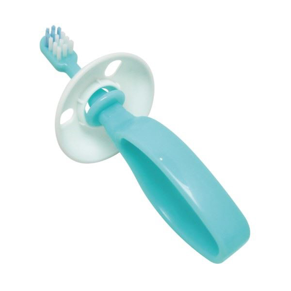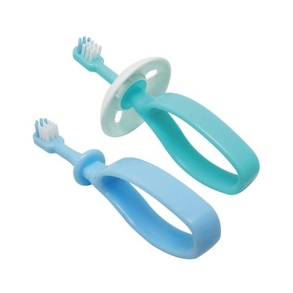 前歯が生え始める頃(6ヵ月〜)向けのベビー歯ブラシです。どこからでも持ちやすいりんぐ形状のグリップは、上下左右どの方向にでも持ててブラッシングすることができます!ブラシヘッドが「乳歯2本分」を目安にしたちょうどいいサイズ感に設計