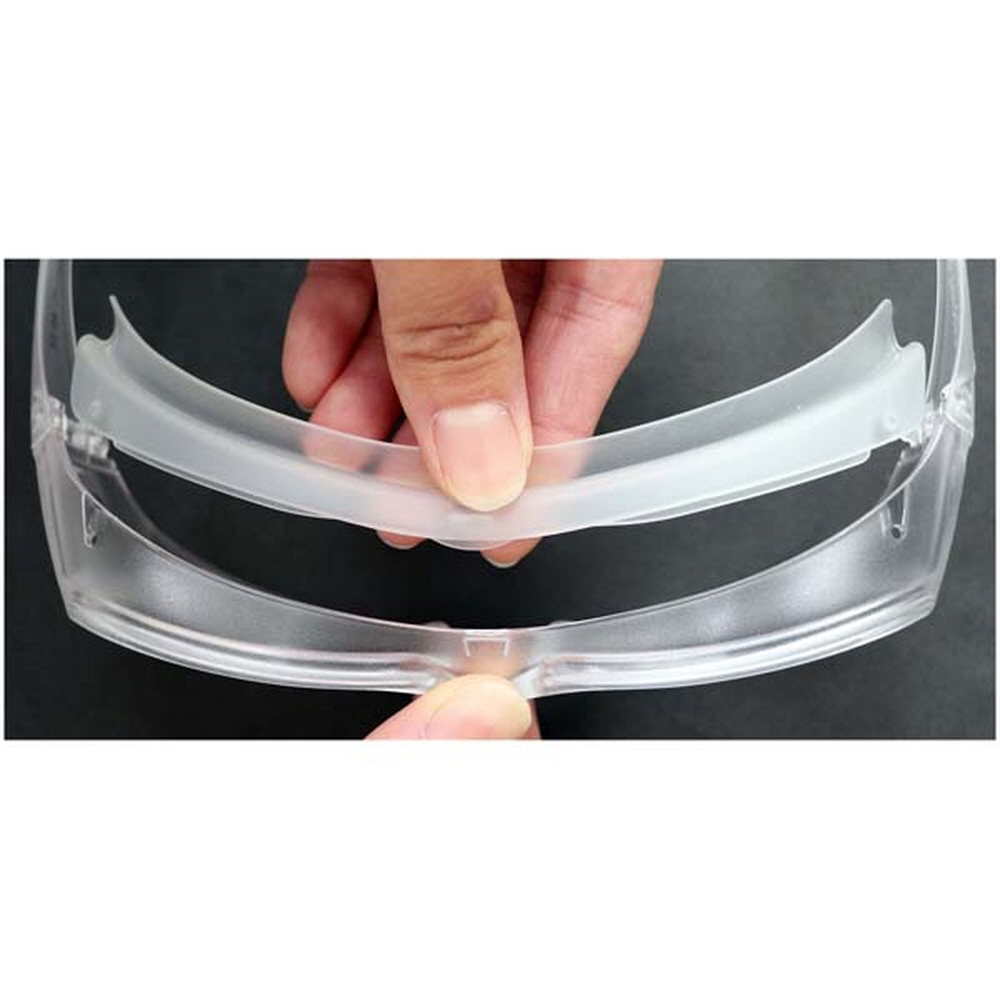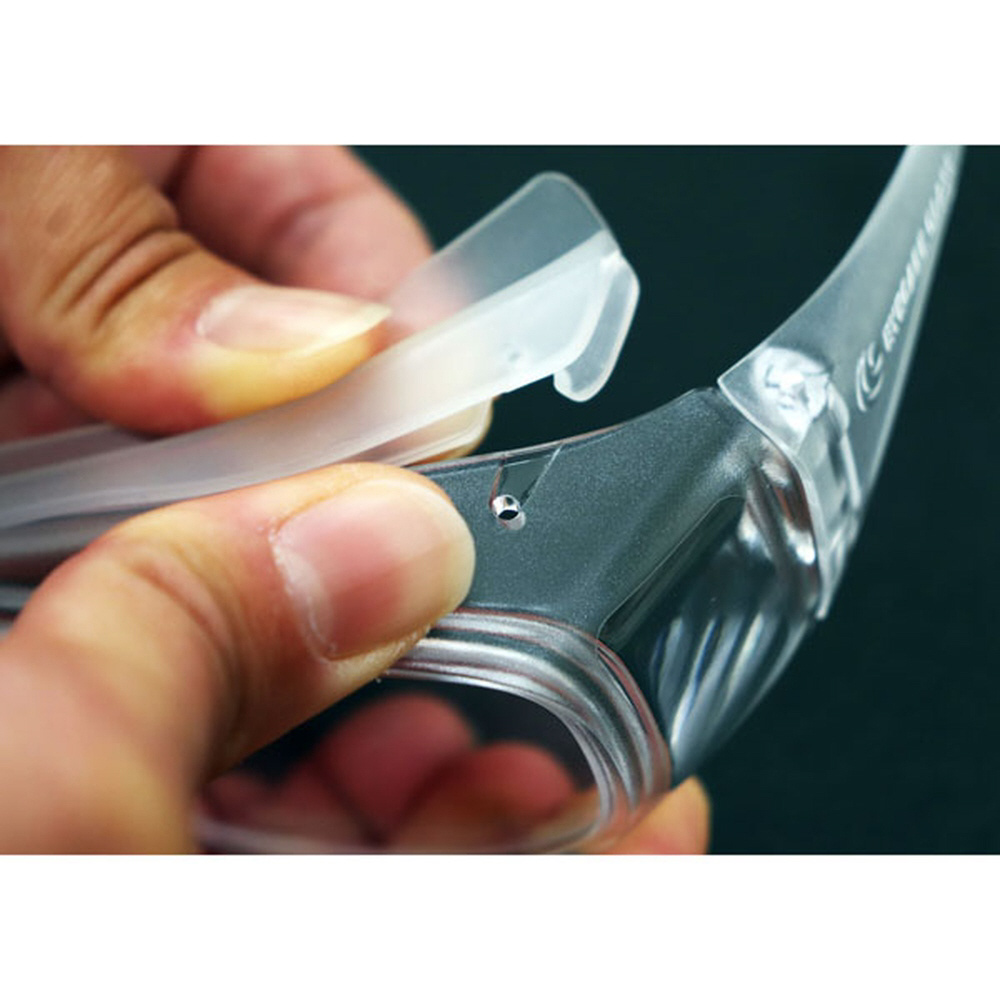 J字型の柔らかいクッションが優しくお顔にフィットし、メガネの上から着用する際にできる上面の隙間を極限になくします。