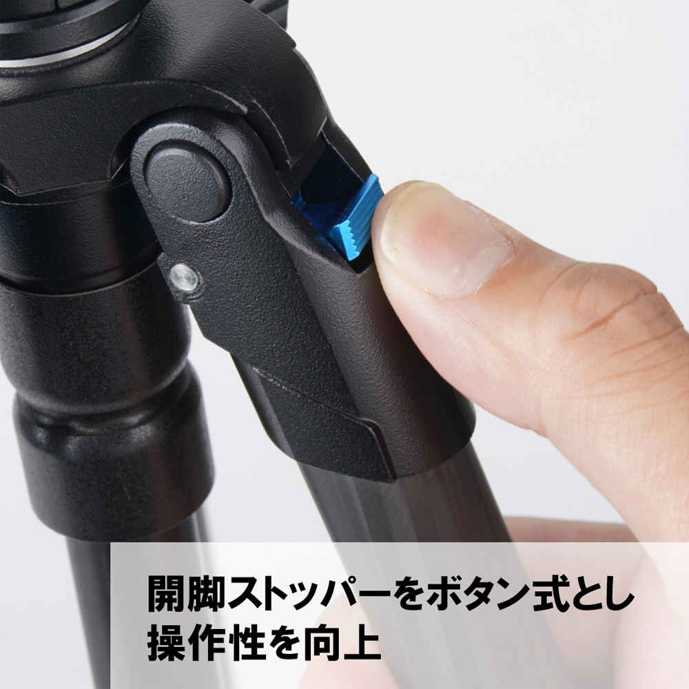 軽快に持ち運べる!開脚機構と雲台を一新した、22mm径4段カーボン三脚
