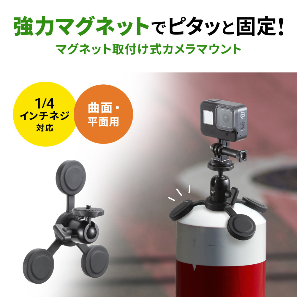 強力マグネットで支柱や壁面に取り付けできるカメラマウント。