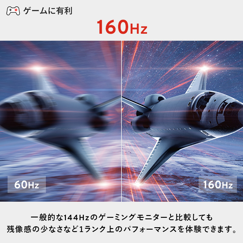 1秒間に最大160フレームを描写することで、一般的な60Hzのモニターと比べると映像がなめらかで視認性が良く、映像のブレが抑制されます。