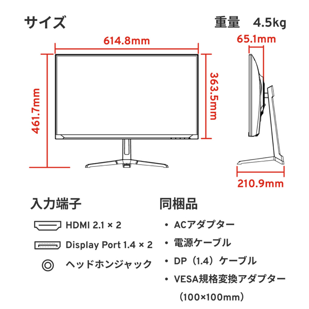 アームスタンドの取り付けに便利なVESA規格75×75mmを採用。また、同梱のVESA規格変換アダプターを使用することで100×100mmにも対応可能です。