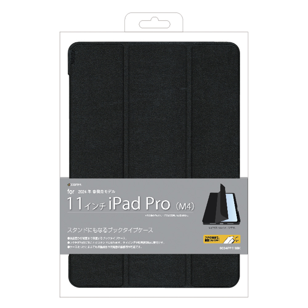 11インチiPad Pro(M4)用 手帳ケース スタンド機能 スリープ機能対応 ペンシルホルダー ブラック 8034IPP11BBK