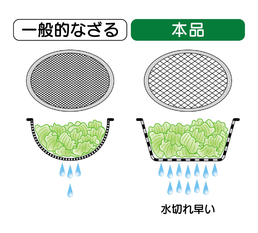 野菜や麺類、揚げ物ならから揚げやポテトフライに。網目が大きいので、切れも良いです。汚れも付きにくくお手入れも簡単。