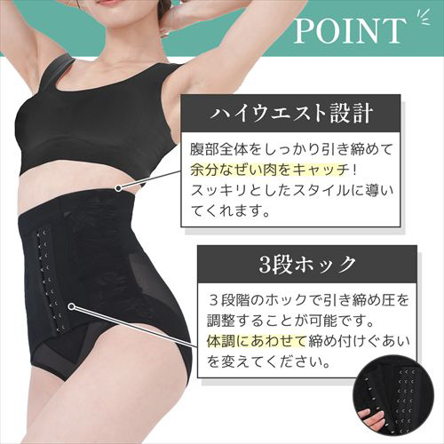 ショーツタイプなので普段のお洋服の下に仕込める骨盤サポートインナー。3段階のホックで締め付け強度の調整が可能。豊富なサイズ展開であなたにぴったりのサイズが見つかります。