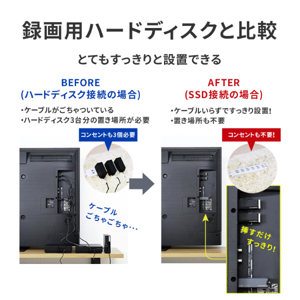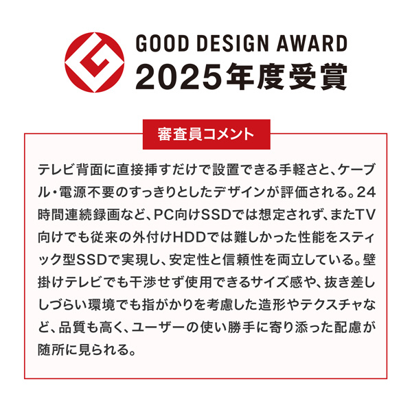 本商品は、レグザ「タイムシフトマシン」に対応した業界初(※)の録画用スティックSSDです。