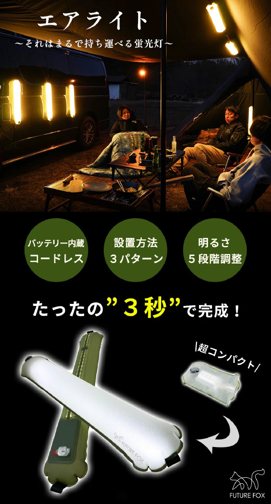 空気を入れて3秒で使えるアウトドア用ライト。
