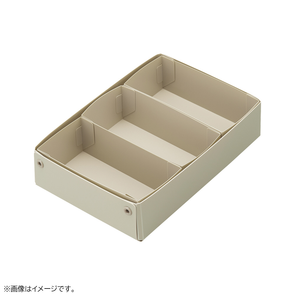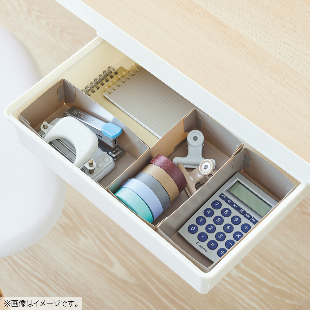 引き出しの仕切りとして使える組み立て式の仕切りケース。別売りのデスクトレーと組み合わせ可能です。