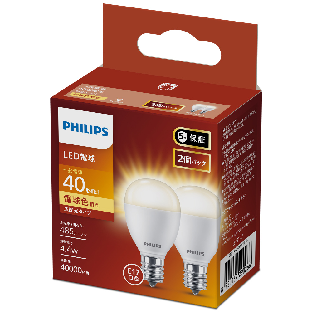 一般電球40W相当 電球色 E17口金 2個入り