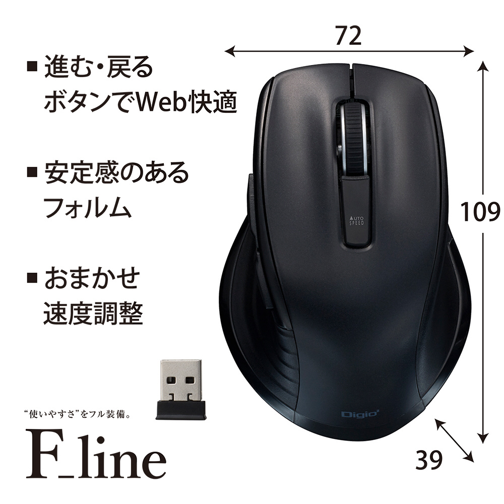 マウス F_line(Chrome/Mac/Windows11対応) ブラック MUS-RKF226BK [BlueLED /無線(ワイヤレス) /5ボタン /USB]