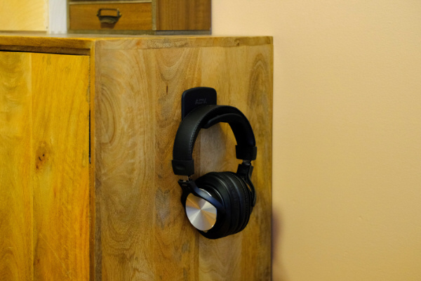 壁掛け専用のヘッドホンハンガーです。貼れてはがせる強力粘着テープで、壁を傷つける事なくご使用いただけます。