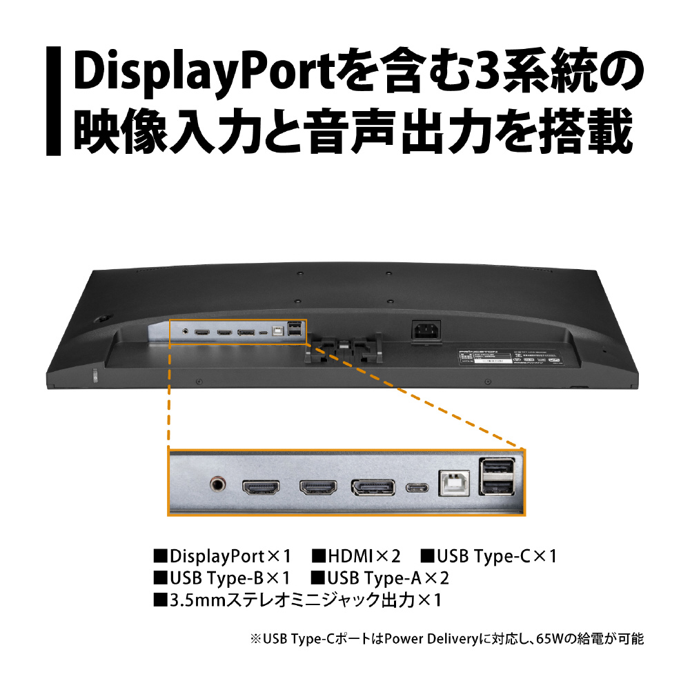 HDMIx1、Type-Cx1、DisplayPortx1の映像入力端子と、オーディオ出力 x1の音声端子を搭載しています。