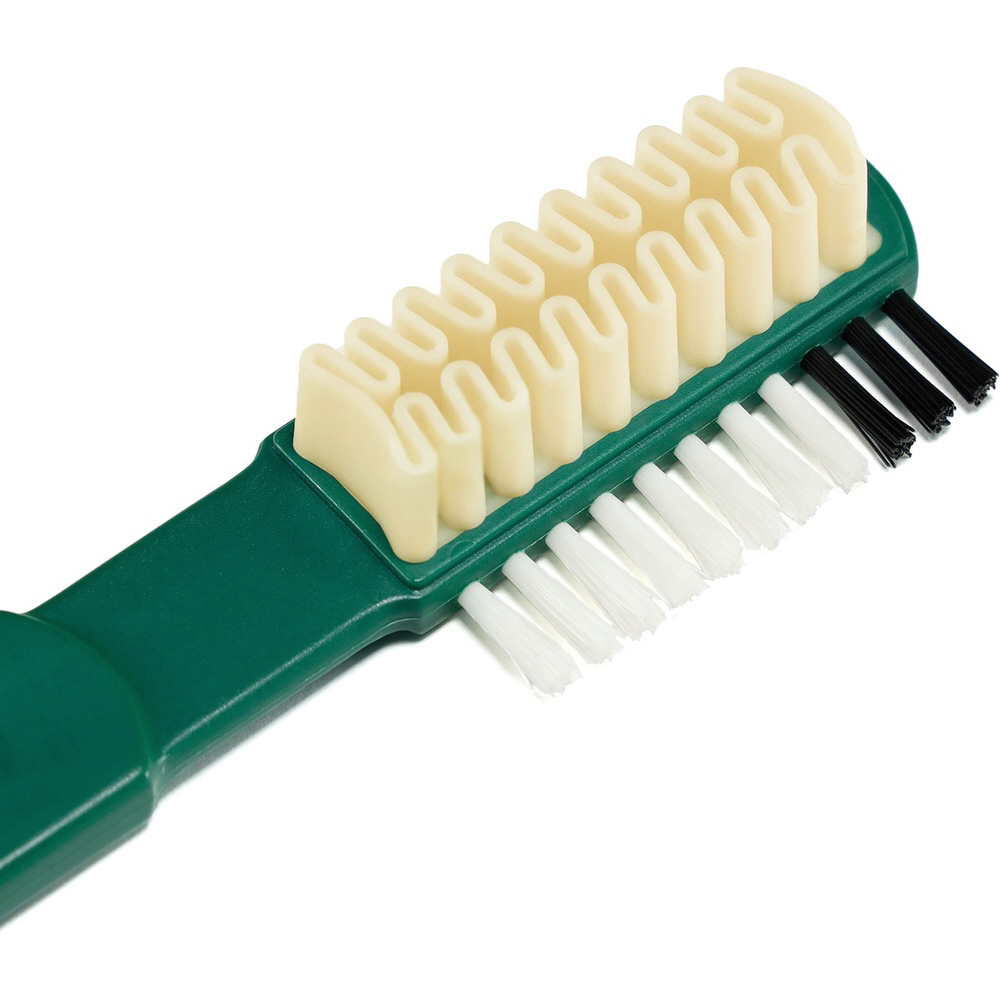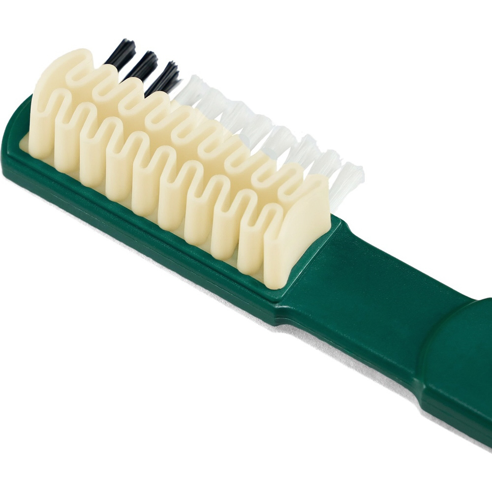 側面のナイロン毛は細かい箇所の汚れ落とし、お手入れの仕上げに毛並みを整えるのに使います。