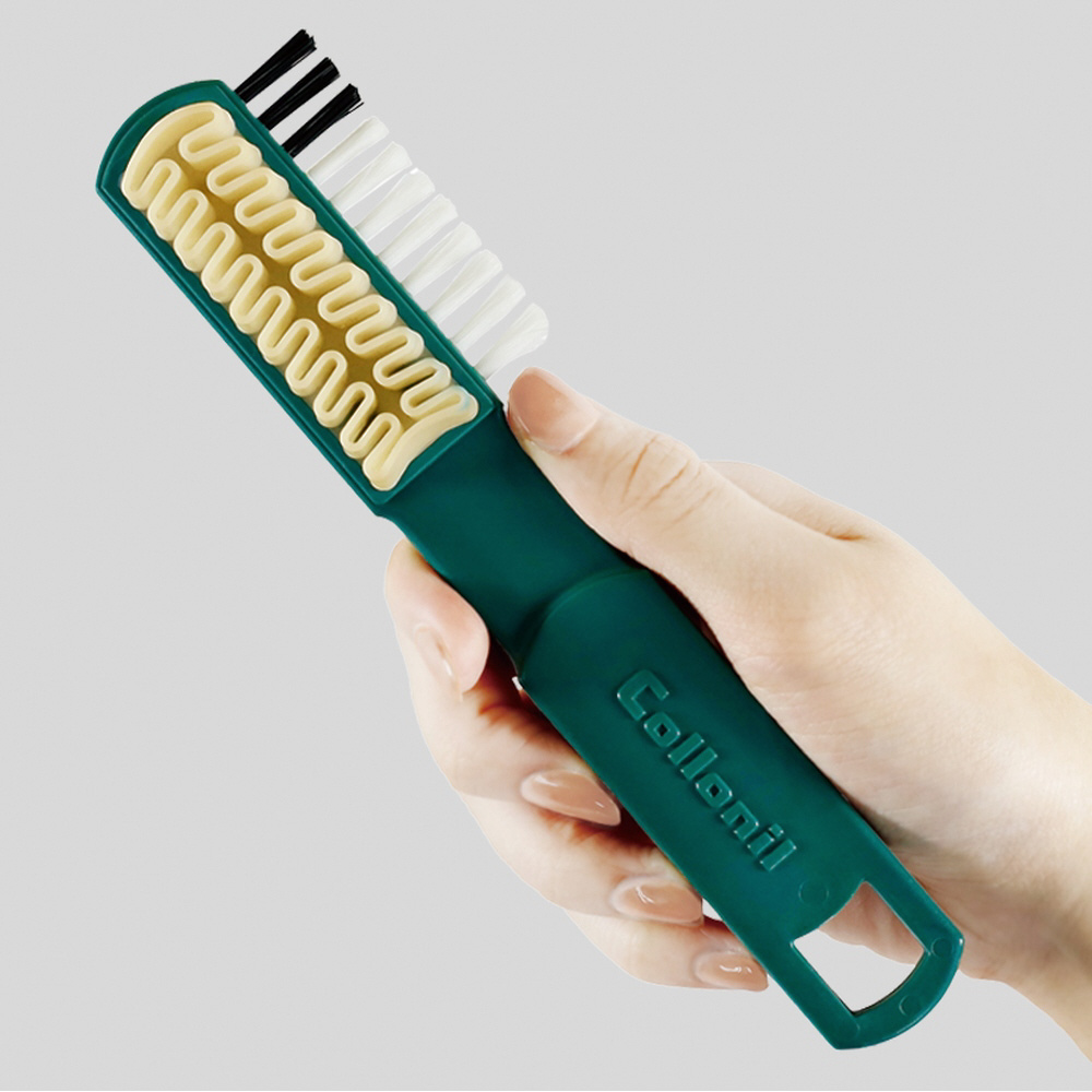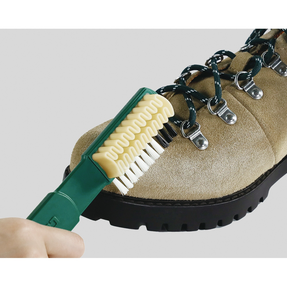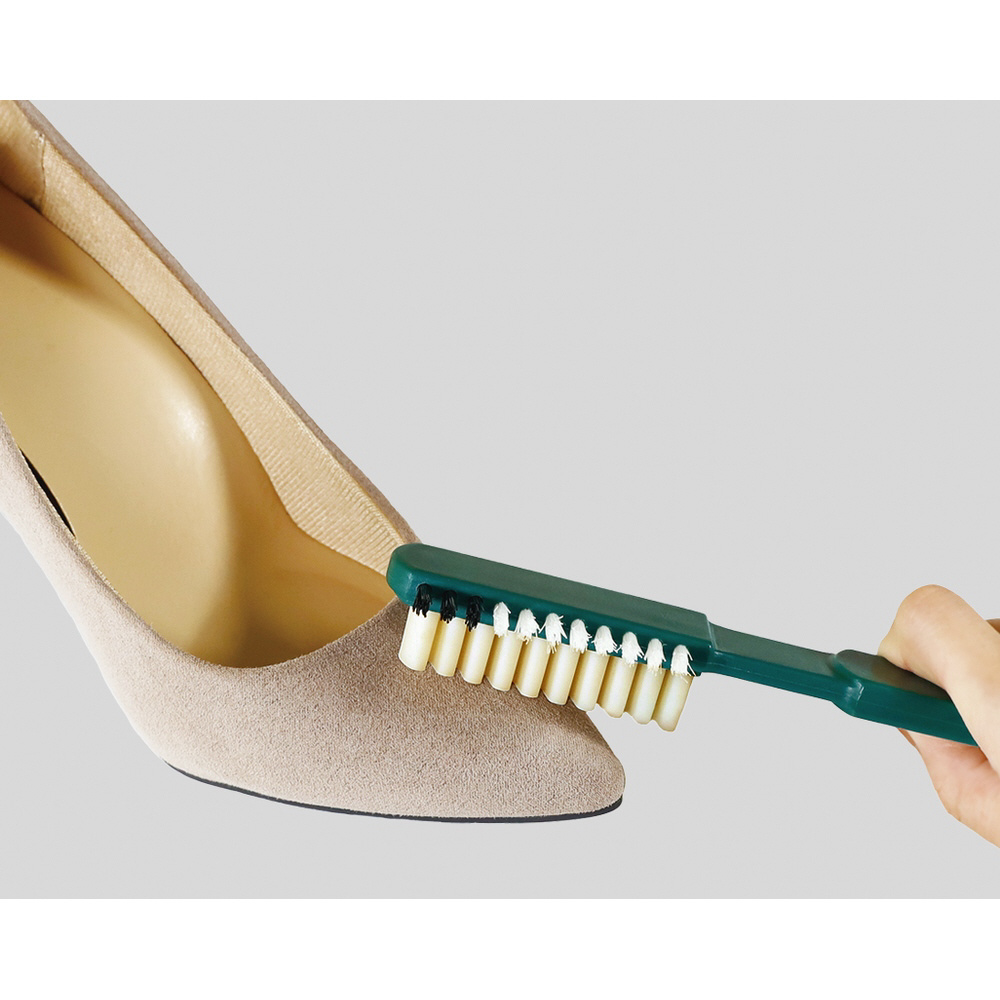 スウェード・ヌバック・ベロア等起毛皮革の汚れを落とし、毛並みを整えるのに最適の設計。