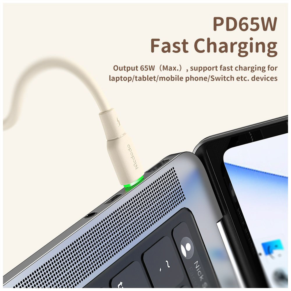PD 65Wの急速充電が可能で、様々なデバイスに使用可能。