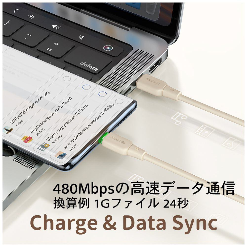 ご利用のデバイスのデータを移行するとき、最大480Mbpsの速度でデータ通信が可能です。