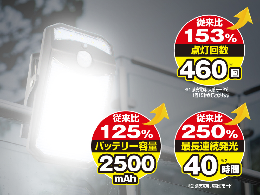 ■最長約40時間連続発光(満充電時、常夜灯モード)