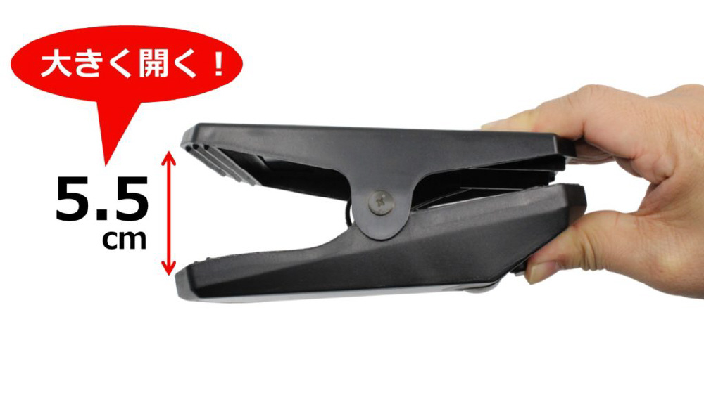 簡単に取り付けできるクリップ式(クリップ幅55mm、奥行70mm)