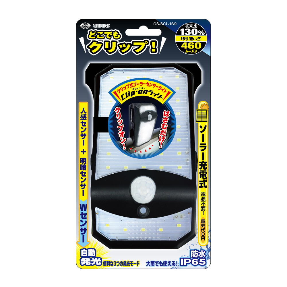 クリップオンライト/ソーラー充電式/クリップ式 Glanshield GS-SCL-169 GS-SCL-169