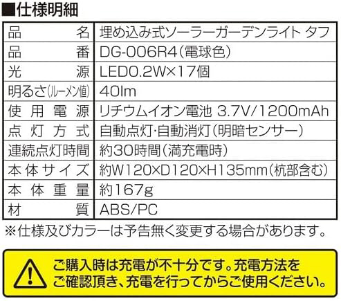 埋込式ソーラーガーデンライトタフ 電球色 DG-006R4