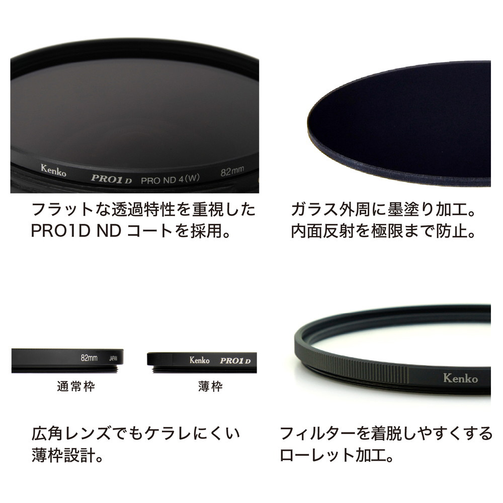 ≪パッケージをリニューアル≫ニュートラル性が極めて高く、色再現性に優れた高精度NDフィルター。PRO1D NDコート、墨塗り加工、薄枠仕様。