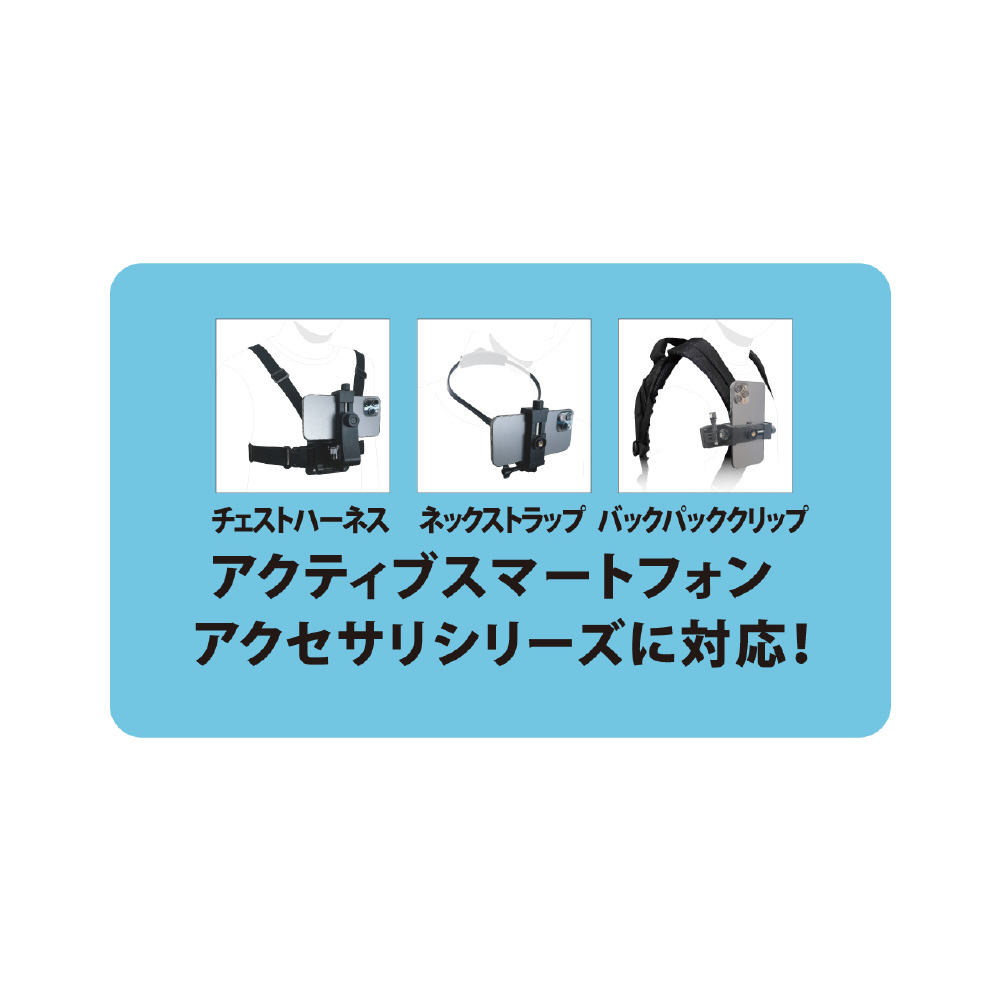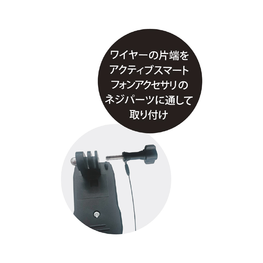 アクティブスマートフォンアクセサリシリーズに対応している落下防止用ワイヤーとホルダーのセット
