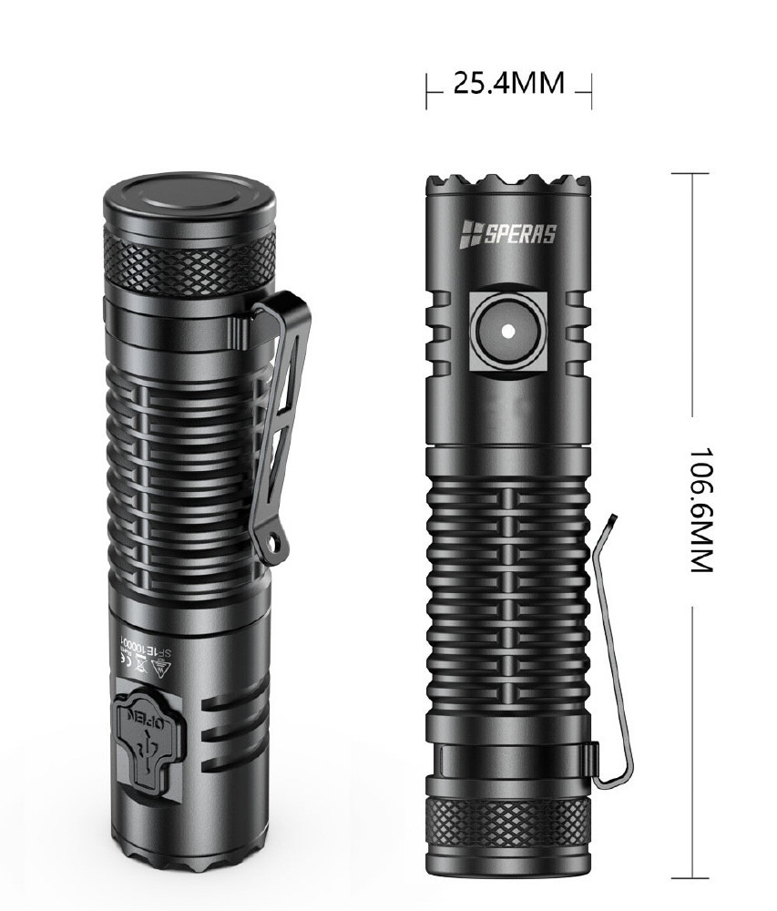 ●フラッシュモード:点灯時及び消灯時、サイドスイッチを連続2回押し→ストロボモードで点灯。再度、サイドスイッチを連続2回押し→SOSモードで点灯。再度、サイドスイッチを押すと消灯します。