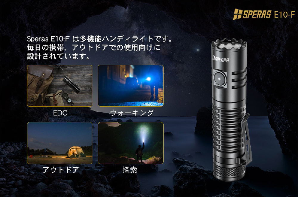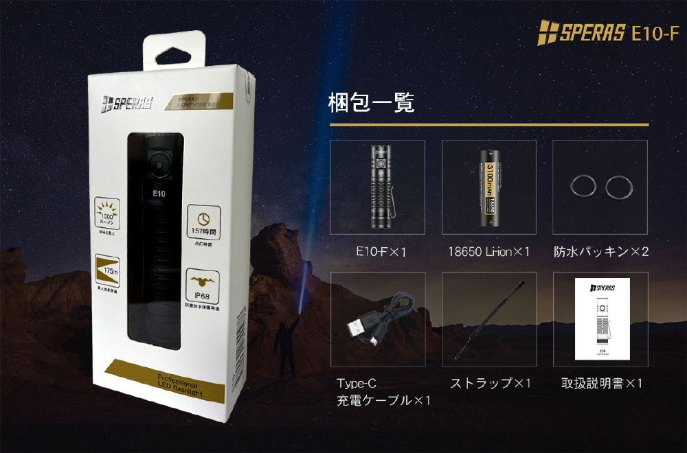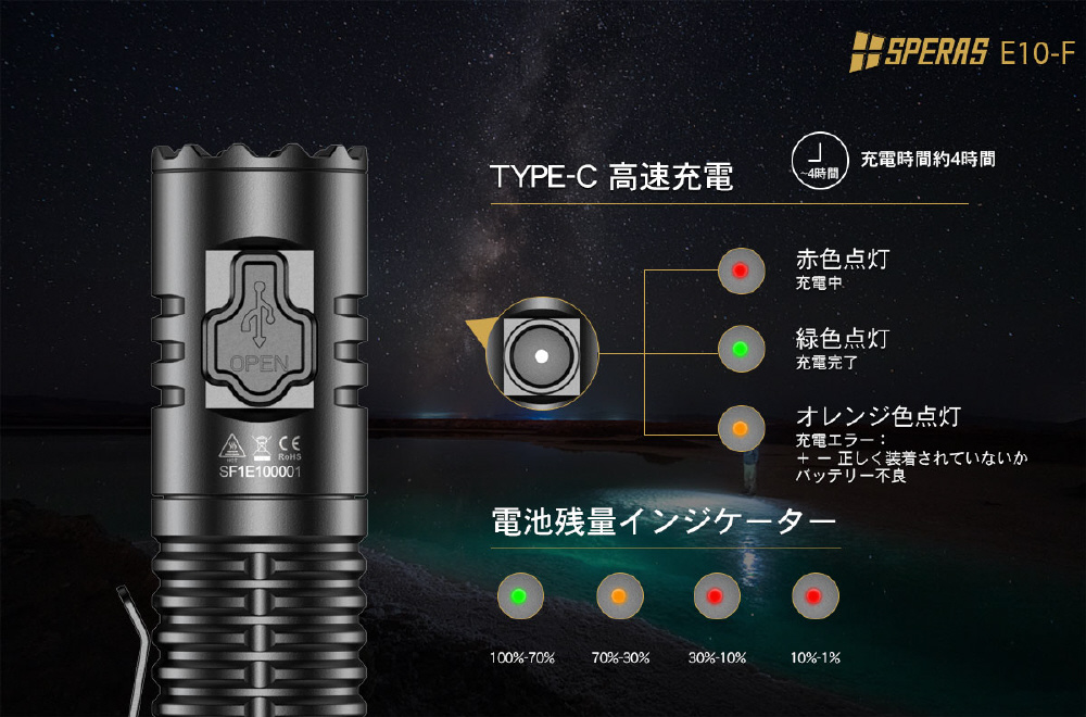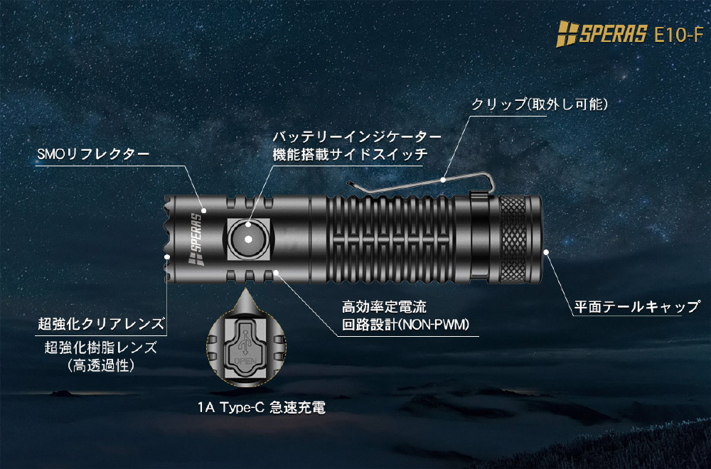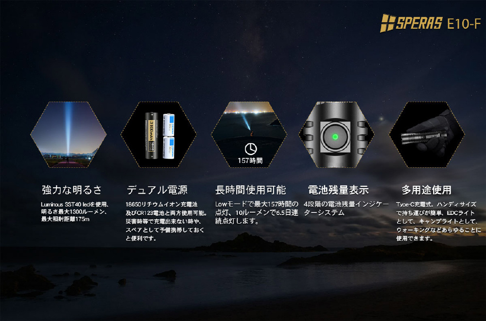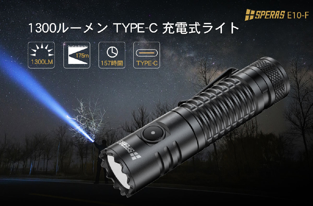 小型トーチライト 1300m ブラック E10-F [LED /充電式 /防水対応]