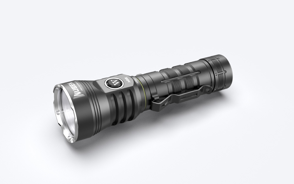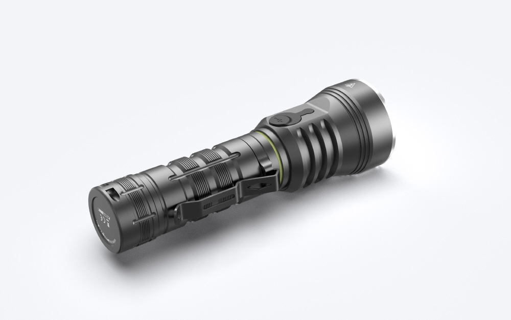最大照射距離290mを実現した、4500ルーメンの明るさをもつ充電式LEDフラッシュライト。誤点灯を防ぐ スイッチロック機能 や暗闇で製品本体の場所がわかる ホタル光 を搭載。