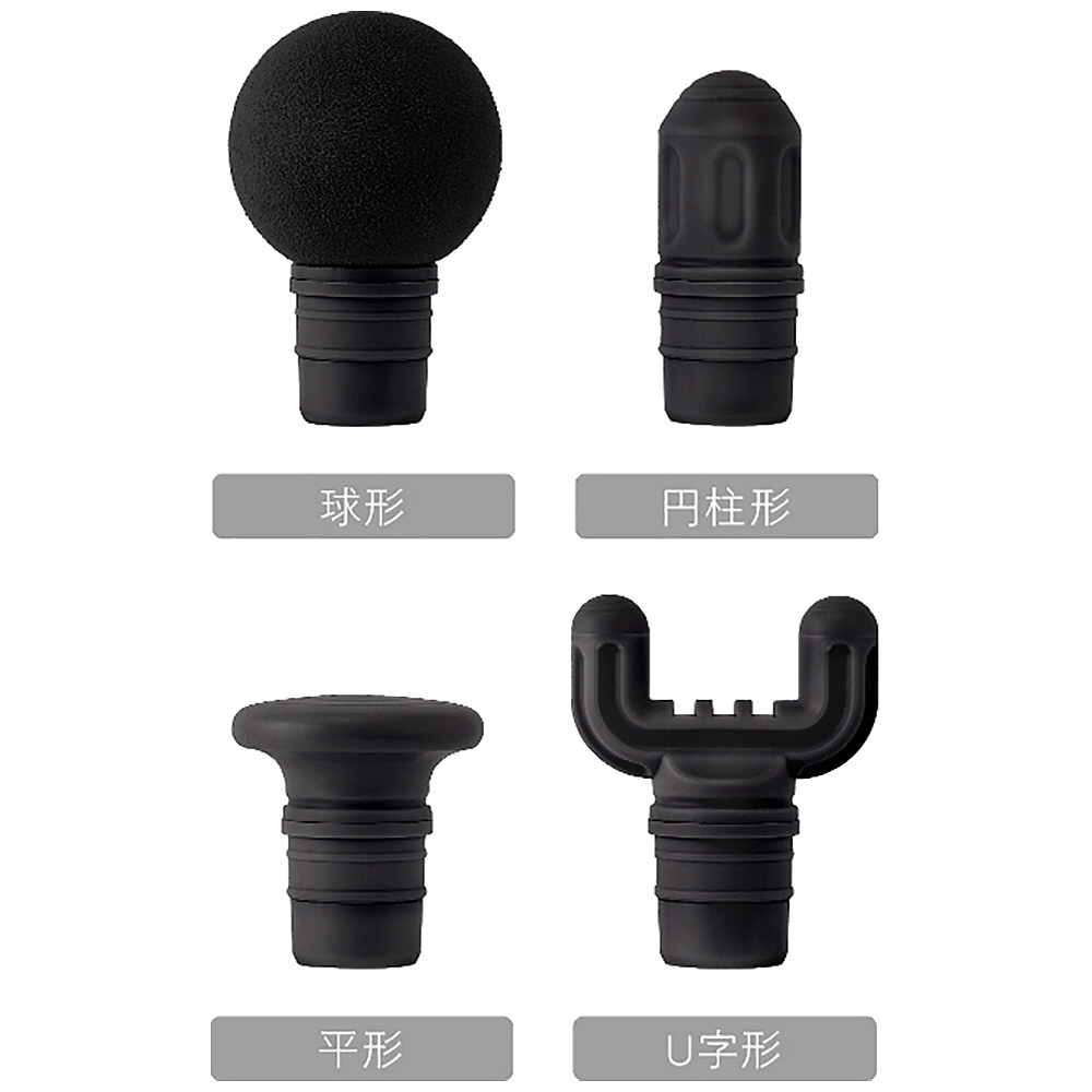 ■4種類(球形・円柱形・平形・U字形)のアタッチメント付きで、1台で全身にアプローチ。