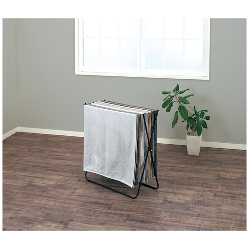 バスタオルが7枚干せるタオルハンガースタンドです。使いたい時にパッと出せる構造にし、使用しない時はスリムに収納もできます。